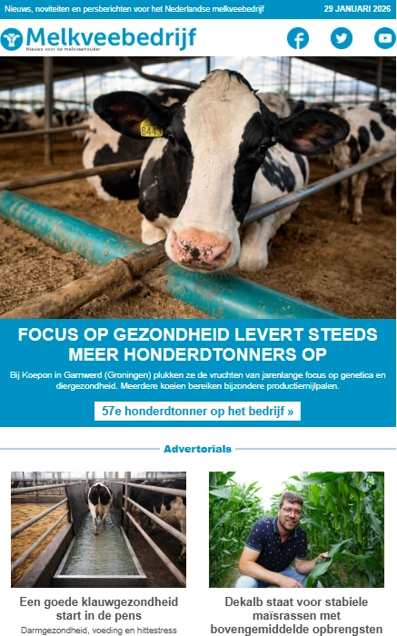 De nieuwsbrief voor de Melkveebedrijf Nederland en België wordt standaard op dinsdag en vrijdag verstuurd.