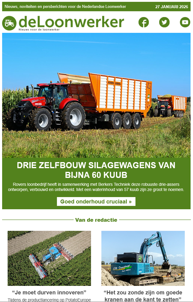 De nieuwsbrief voor de Loonwerker Nederland en België wordt standaard op woensdag verstuurd.